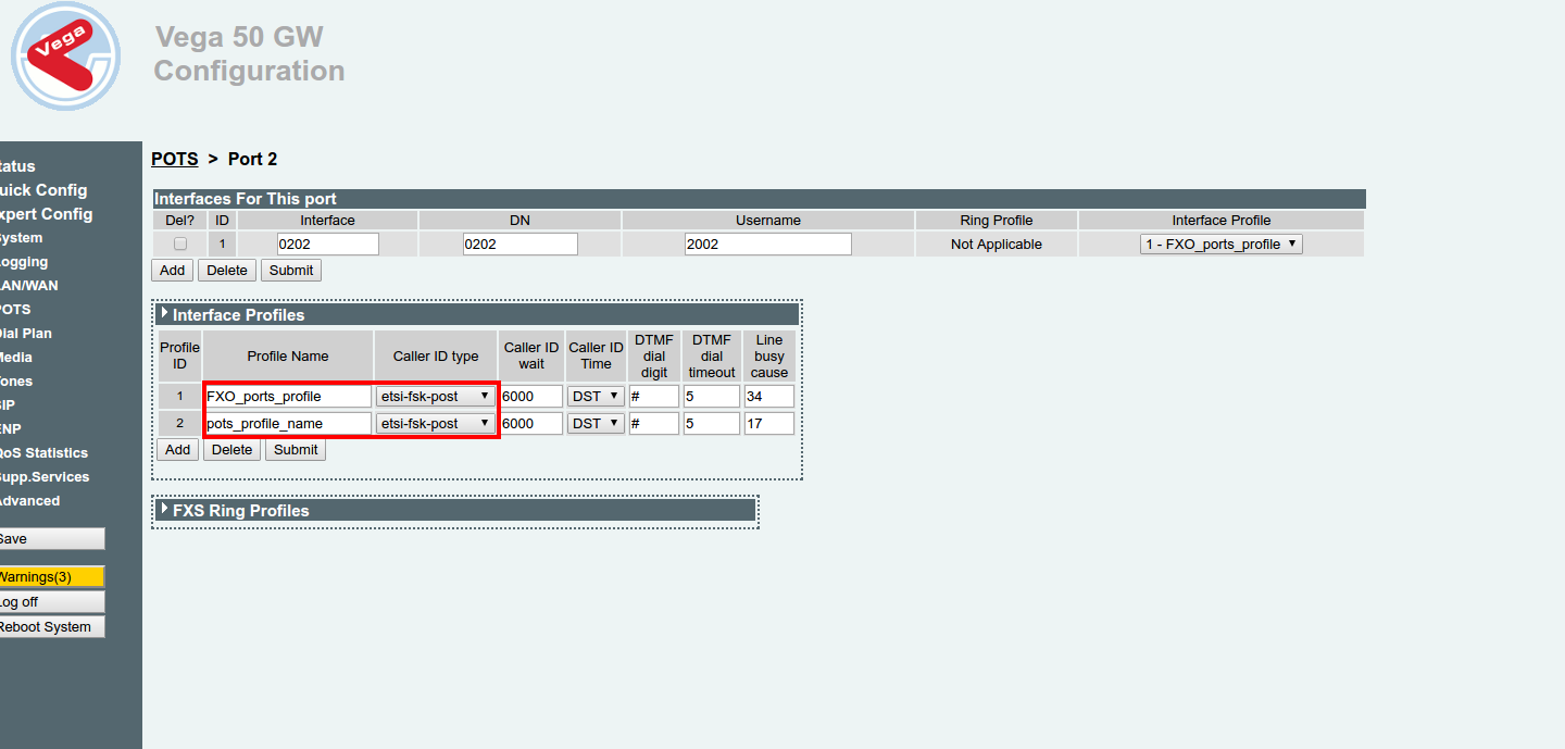 Expert Config -> POTS -> Ports FXO Modify -> Interface Profiles -> Caller ID type di (FXO_ports_profile e pots_profile_name) e provare a cambiare tipo di riconoscimento finché non si attiva il riconoscimento del numero chiamante.