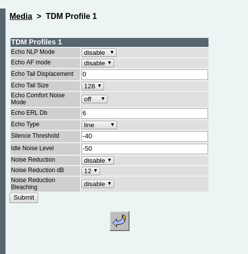 Disabilitare i controlli relativi all'eco abilitati nella sezione Media->TDM Interface 1 configurandoli in questo modo: