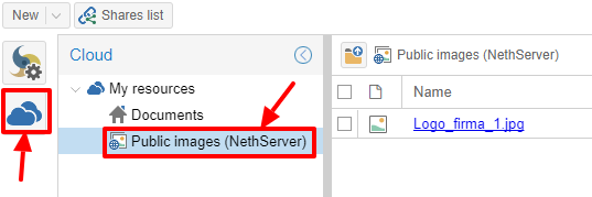 2) caricando il file dell'icona sul cloud pubblico di WebTop (dove si caricano le immagini per le mailcard) tramite il pannello di amministrazione -> Cloud -> Public Images: