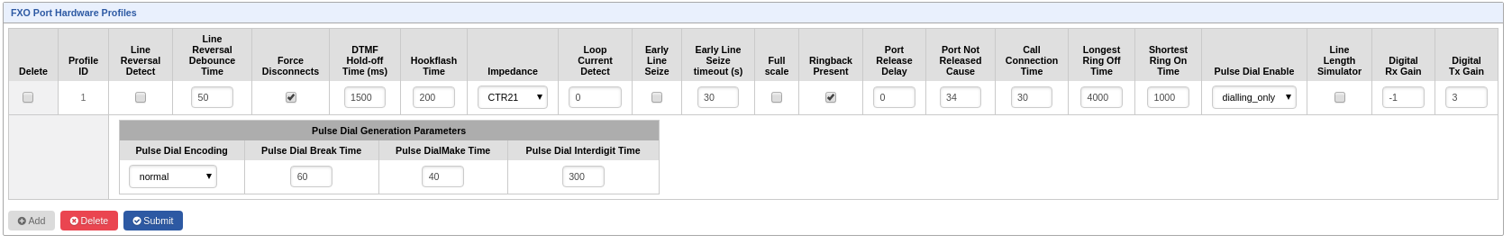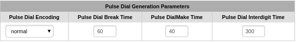 e quindi salvando la configurazione Pulse dial enable su dialing only vengono fuori queste:
