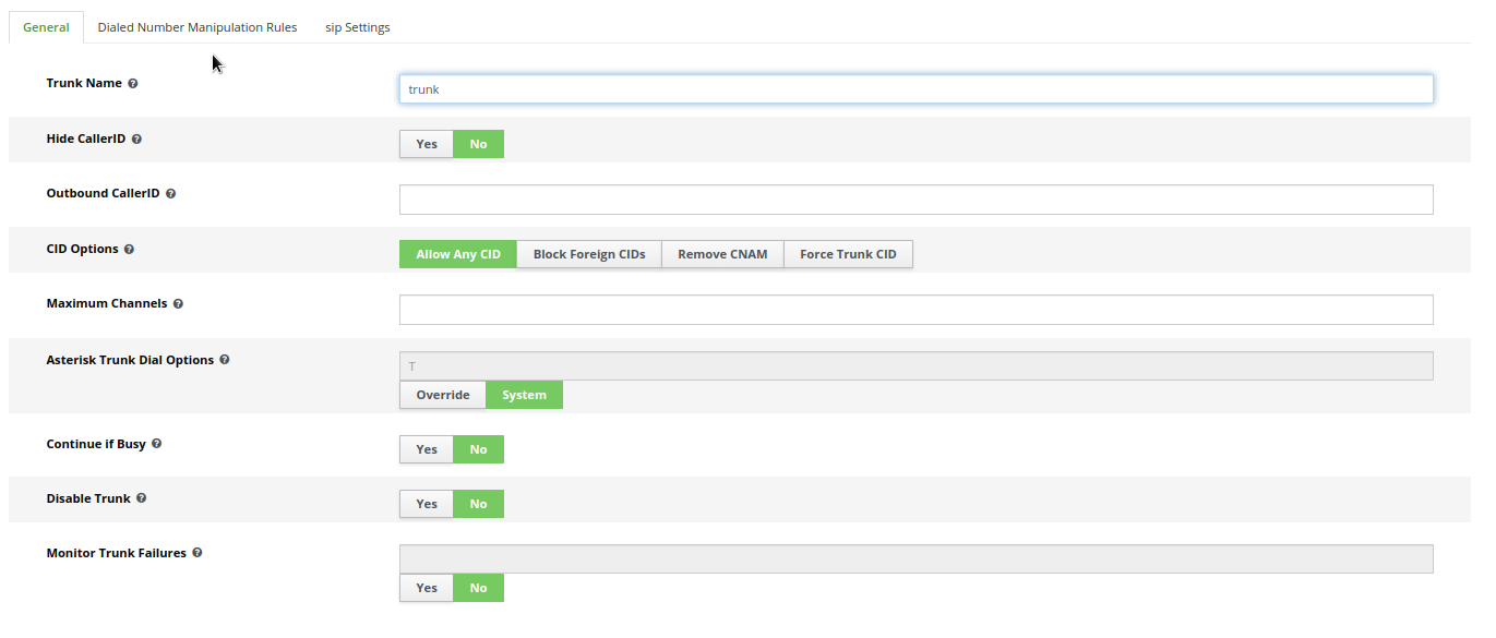 Collegarsi poi alla macchina remota e configurare come segue sempre un nuovo trunk: