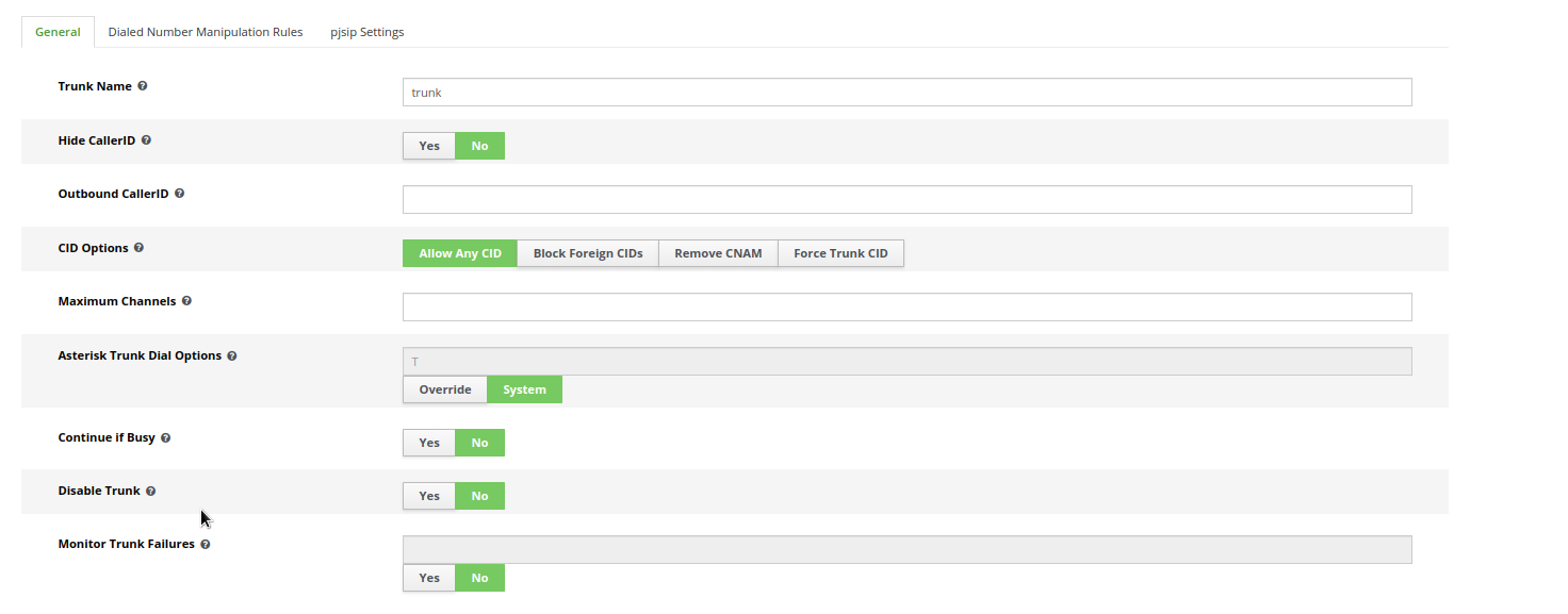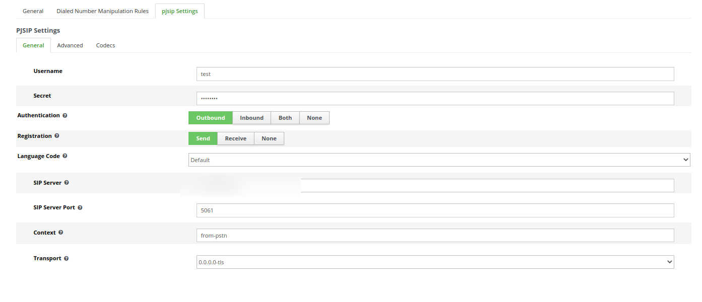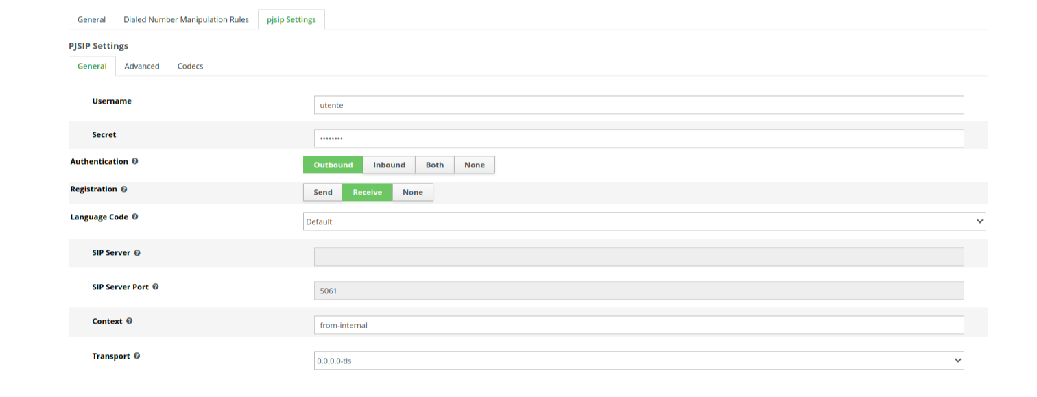 nella sezione Pjsip Settings: