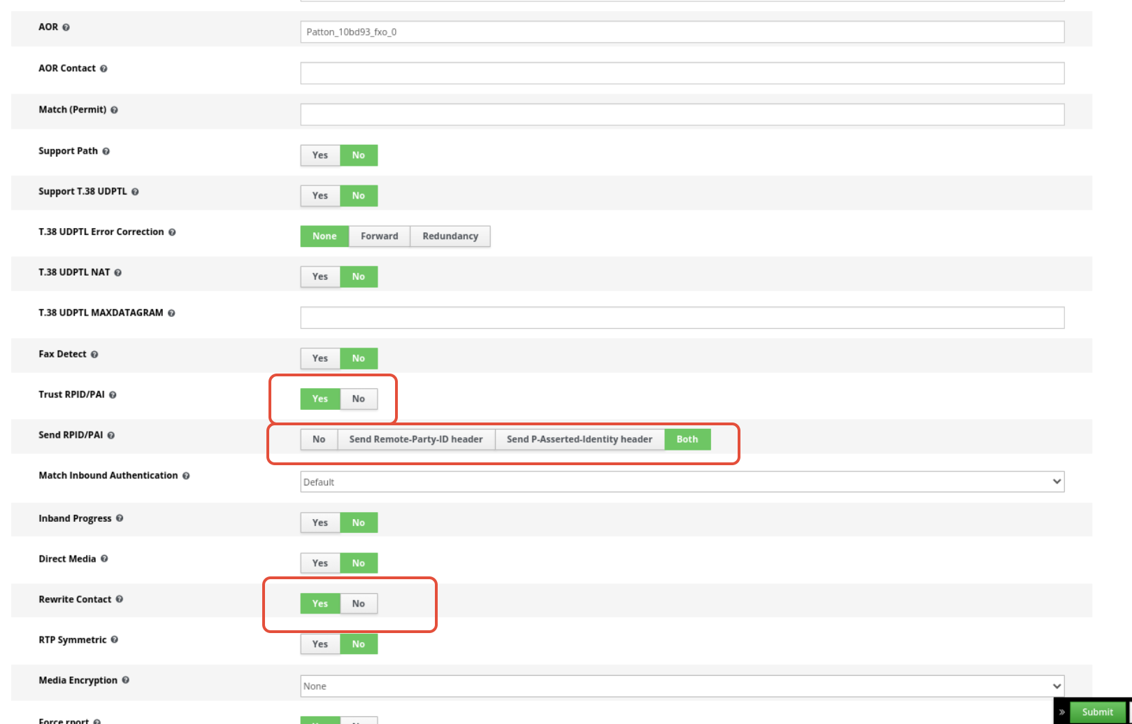 Abilitare autenticazione Inbound e recive sulla registrazione e non modificare il nome del trunk che poi dovrà essere inserito nelle configurazioni del patton