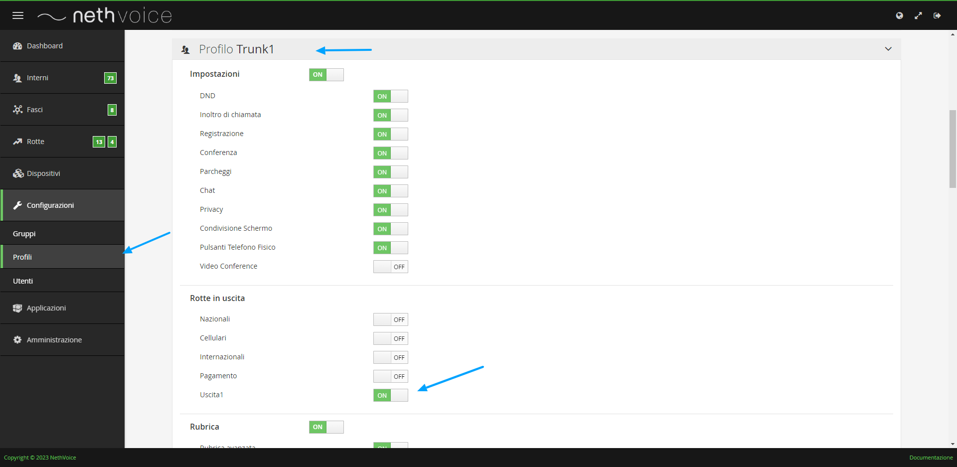 Associare il nuovo profilo Trunk1 agli utenti che si vuole forzare ad uscire con solo quella numerazione.