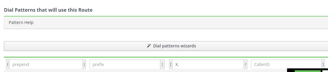 Impostare come Dial Patterns della rotta in uscita appena creata "X." (in questo modo con questa rotta saranno chiamabili tutti i numeri telefonici):