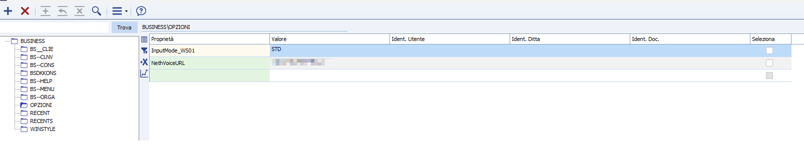Bisogna configurare nel Registro di NTS Business ( cartella "opzioni" principale") l'URL e il numero dell'interno nell'organizzione ditta ( dovrebbe saperlo il rivenditore o il cliente stesso).