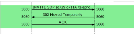 Questo tipo di deviazione consente di effettuare deviazione della chiamata rispondendo appunto con un pacchetto 302 Moved Temporarily, contenente header Contact che contiene il destinatario della deviazione, ad un Invite fatto dal provider per instradare una chiamata.